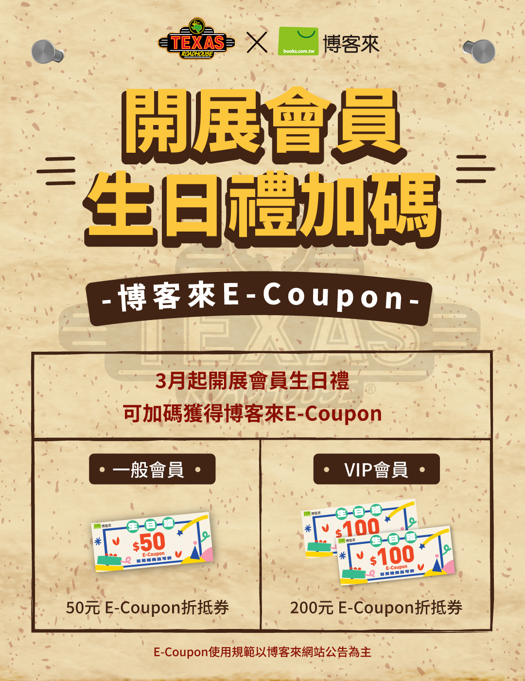 3月起開展會員生日禮可加碼獲得【博客來 E-Coupon】
